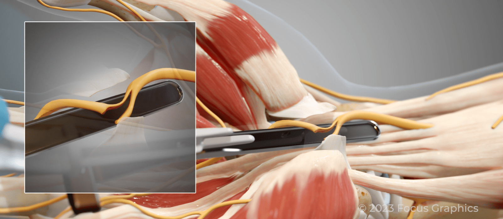 “The issue in any medical malpractice case is that it’s always the ‘chicken or the egg’ so to speak. One of the defenses they attempted was that it just wasn’t an optimal result, which would be considered normal. This kind of procedure can be done right and still not be effective. We had to prove that he had a different medical issue after the procedure than going in, which was the high-grade median nerve tear. The fact that my client only had 6.5k in medical bills didn’t scare our team away, however. I felt compelled because every case has value and could benefit someone’s life. The animation created by Focus Graphics definitely settled our case this year and I hope to work with them again on bigger ones in the future!”